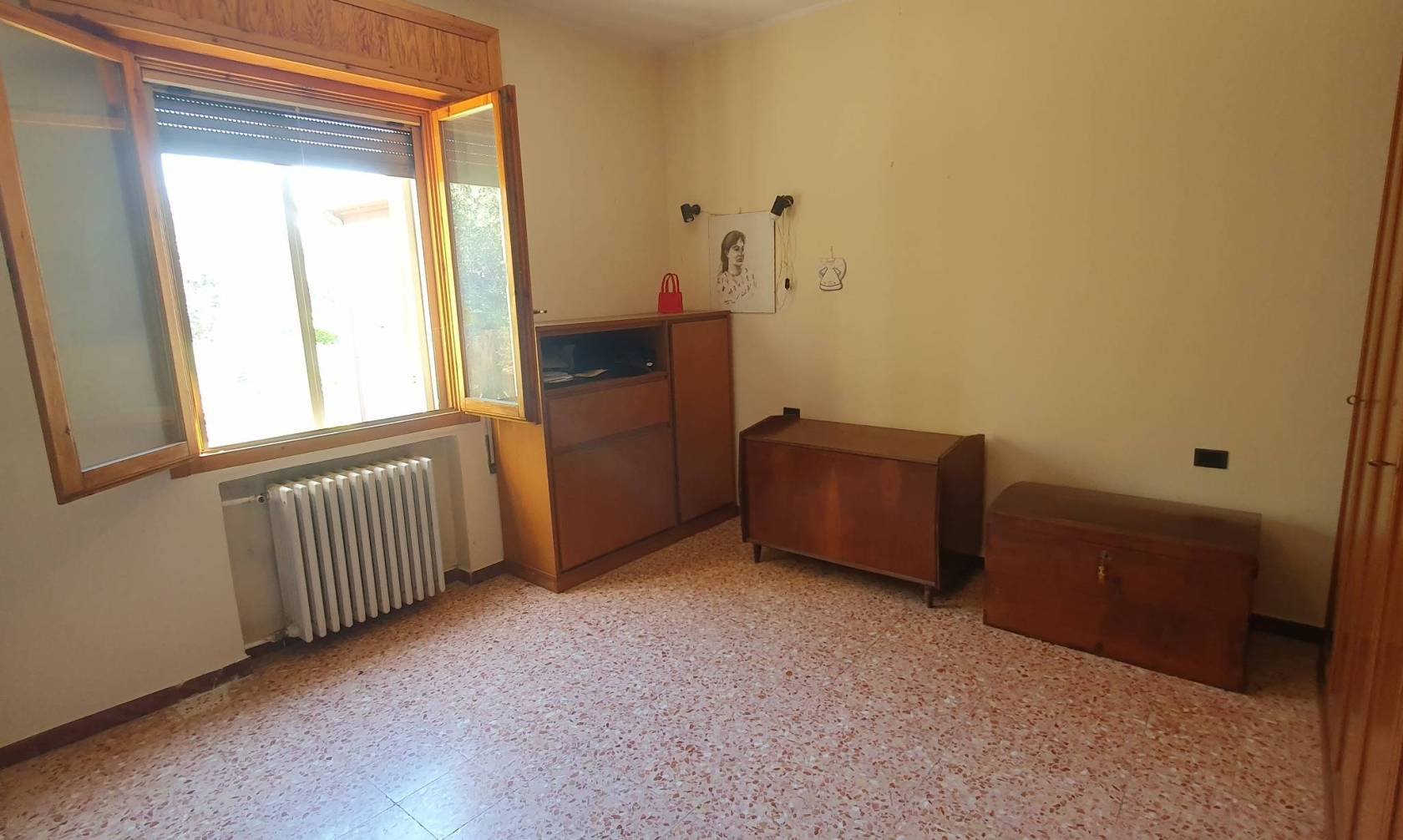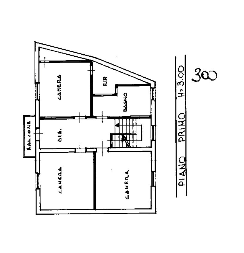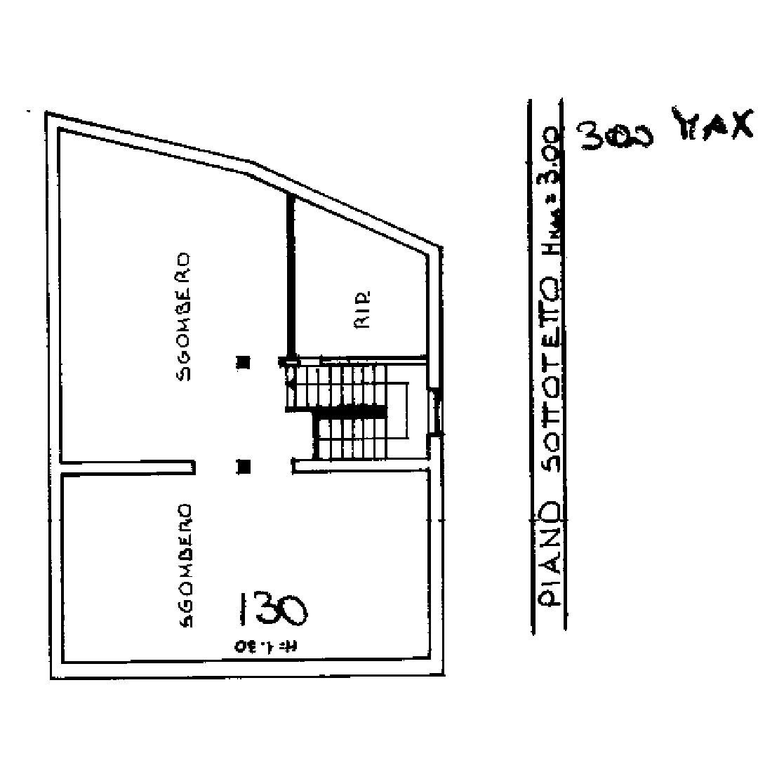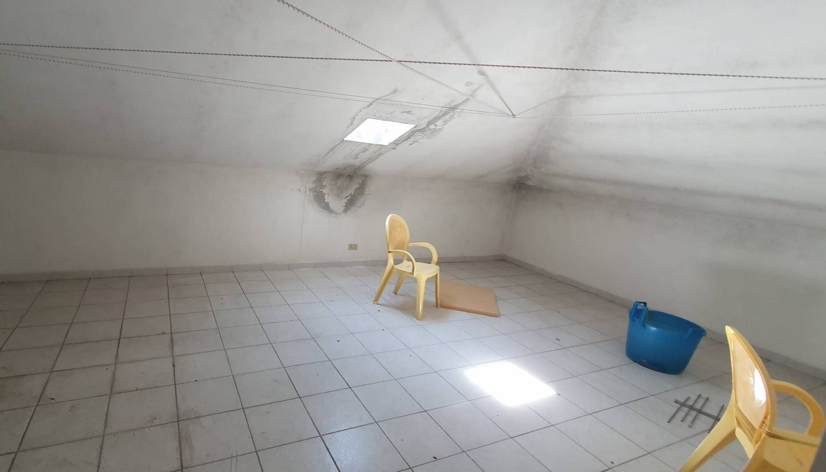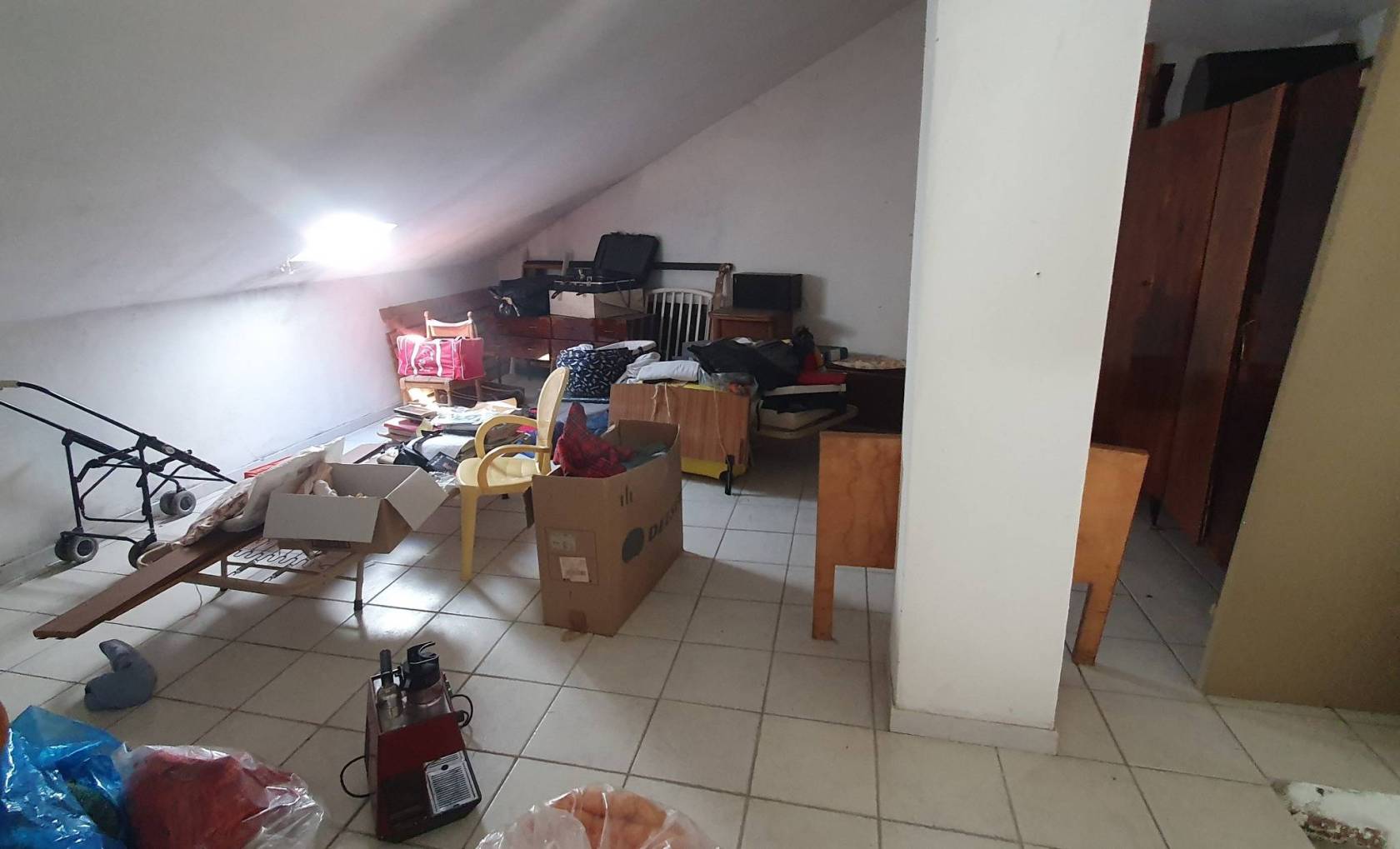 La mansarda ad oggi non è abbittata, con pavimento piastrellato, l'altezza massima di 3 m, l'altezza minima 1.3 m, a tetto spiovente.