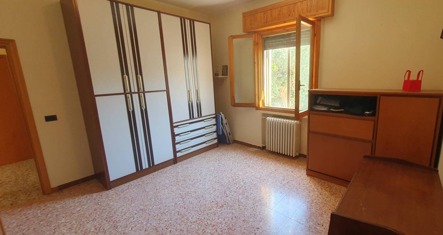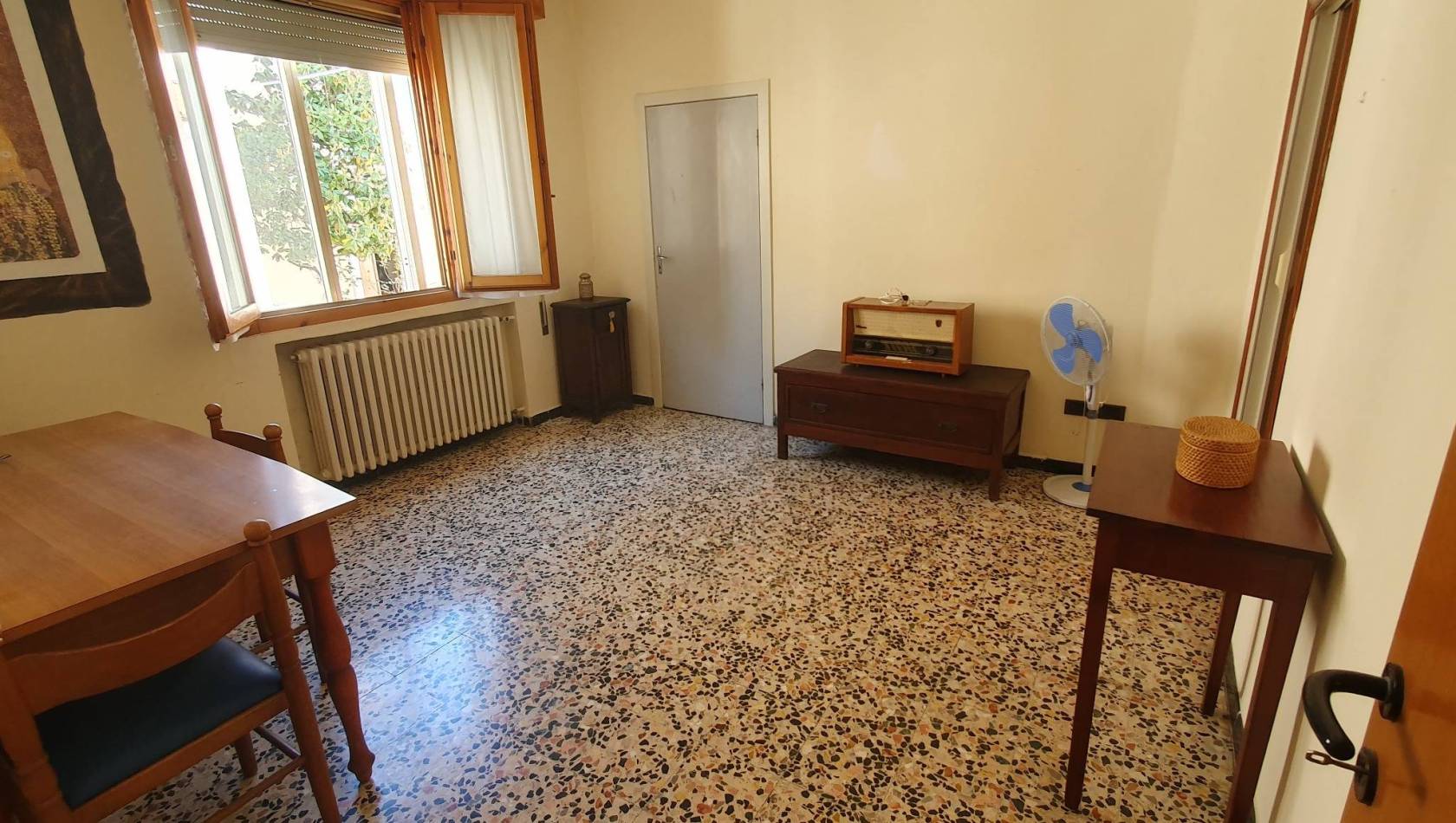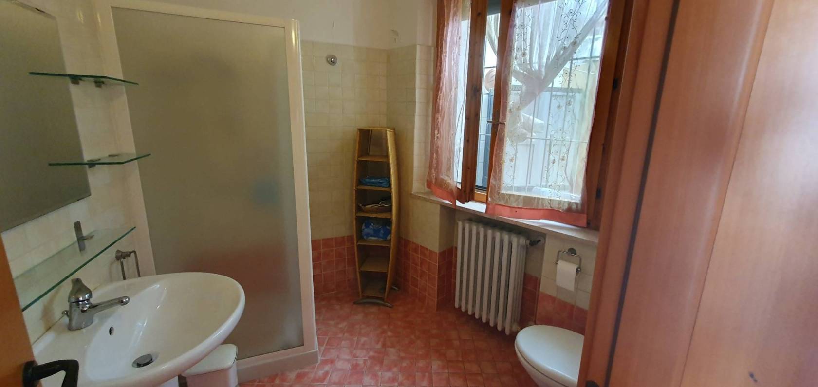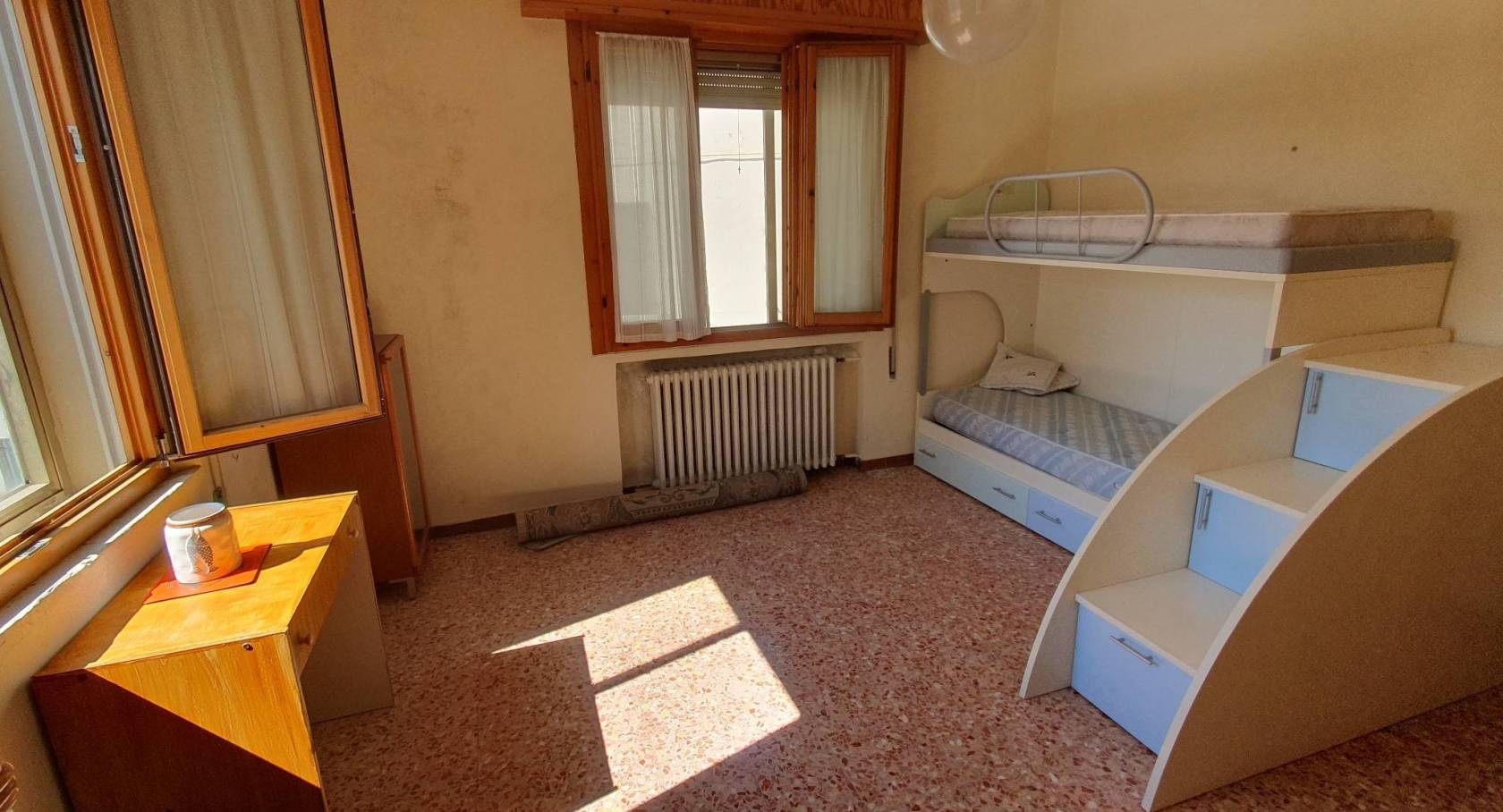 Al piano terra si trova l'ampia cucina abitabile con il ripostiglio, il soggiorno, una camera matrimoniale ed un bagno finestrato con il box doccia.