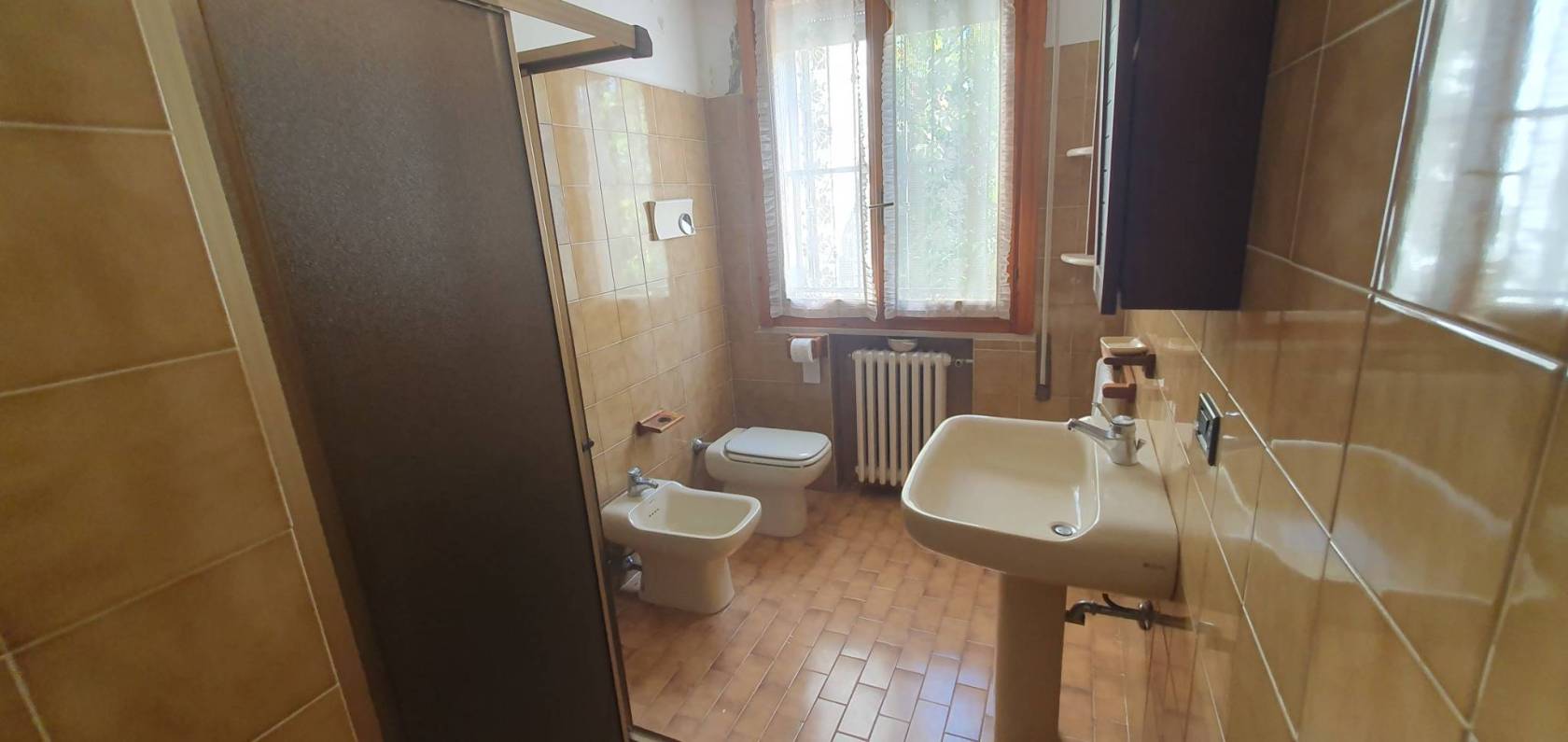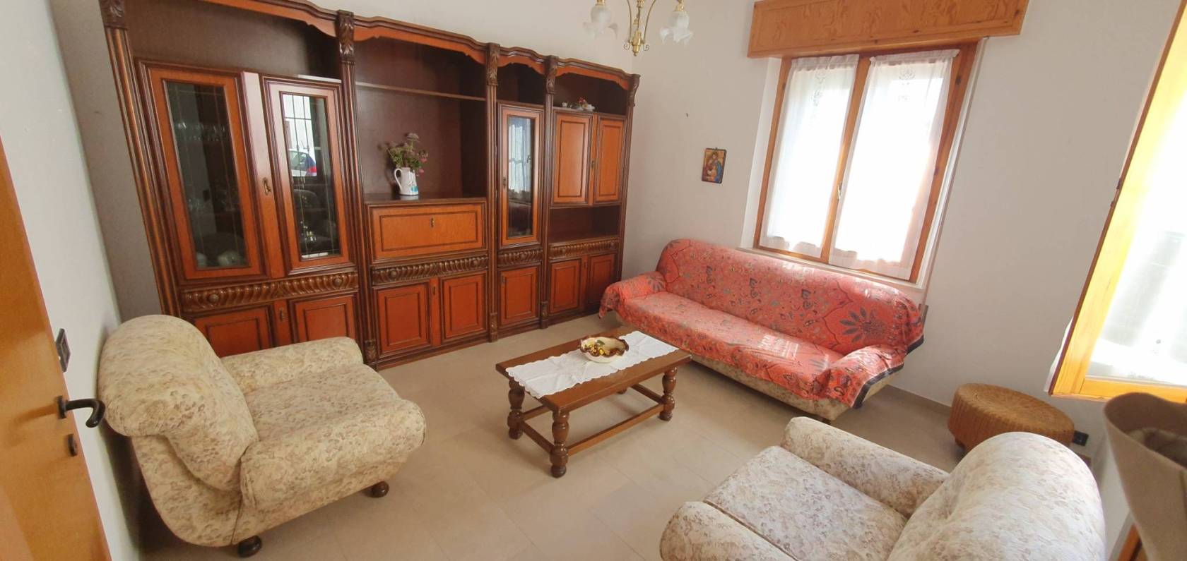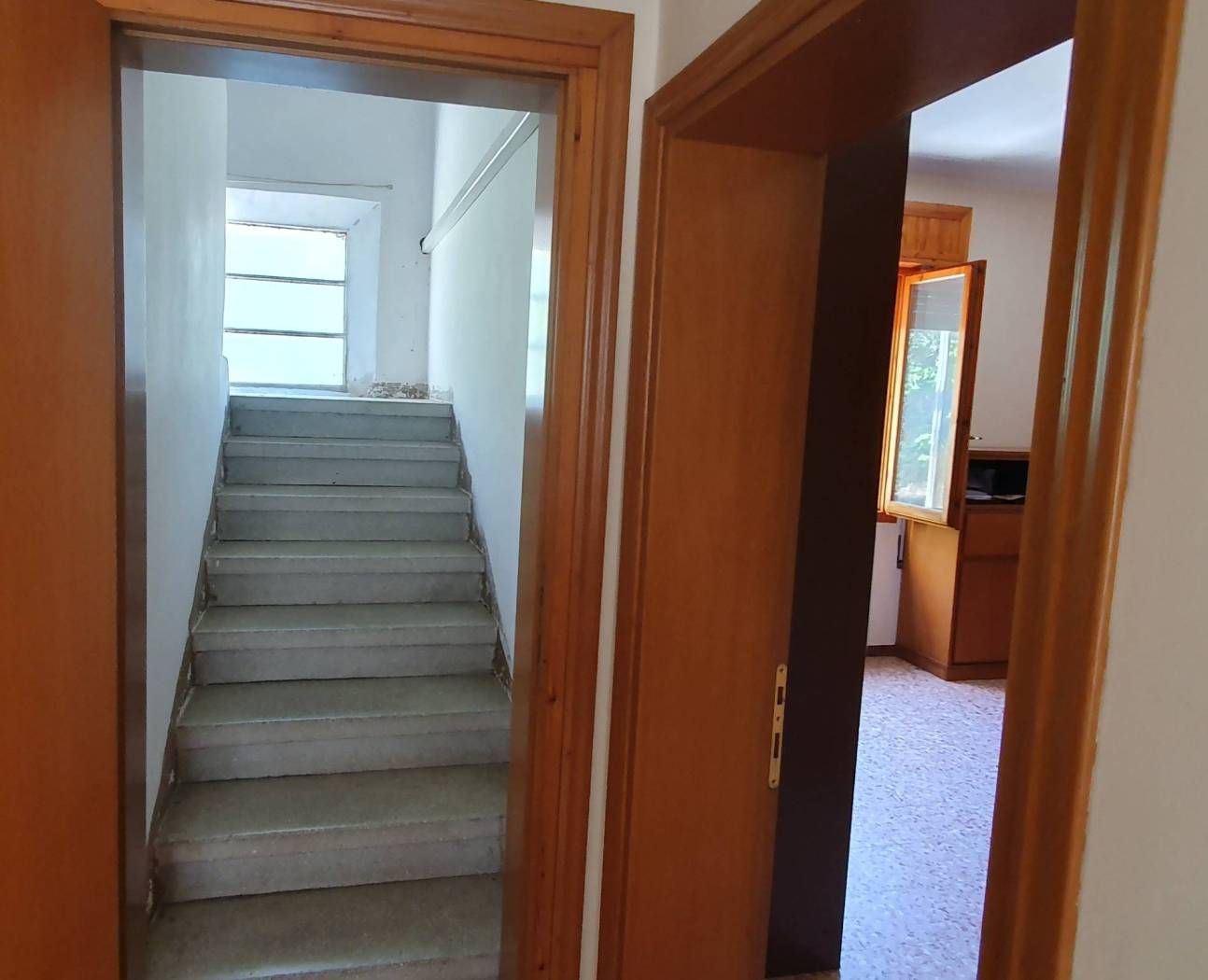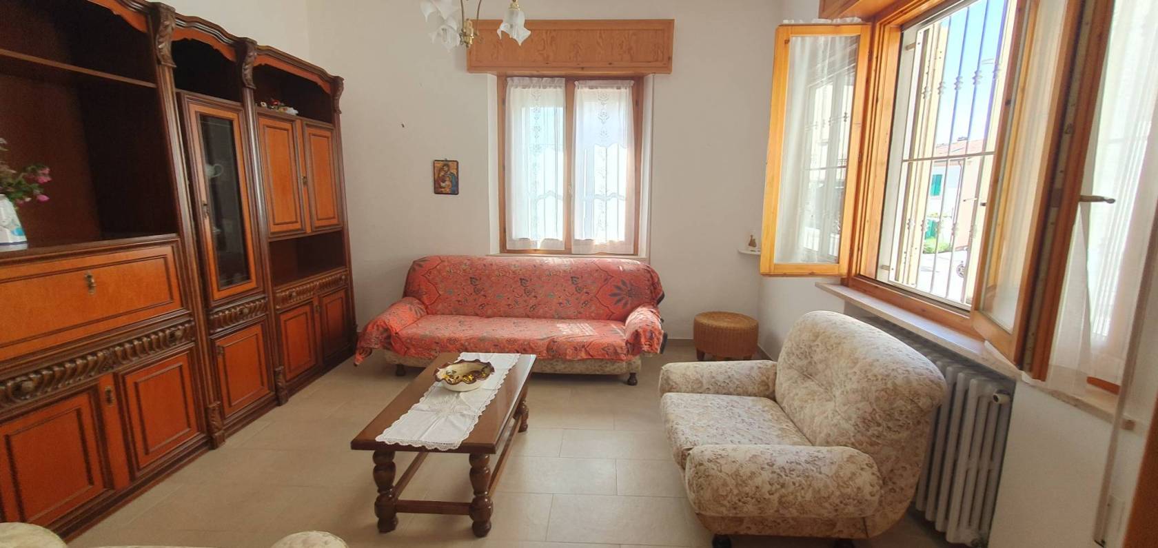 Al piano terra si trova l'ampia cucina abitabile con il ripostiglio, il soggiorno, una camera matrimoniale ed un bagno finestrato con il box doccia.
