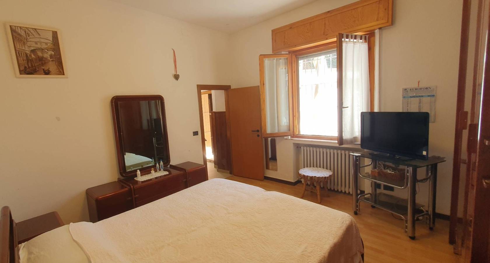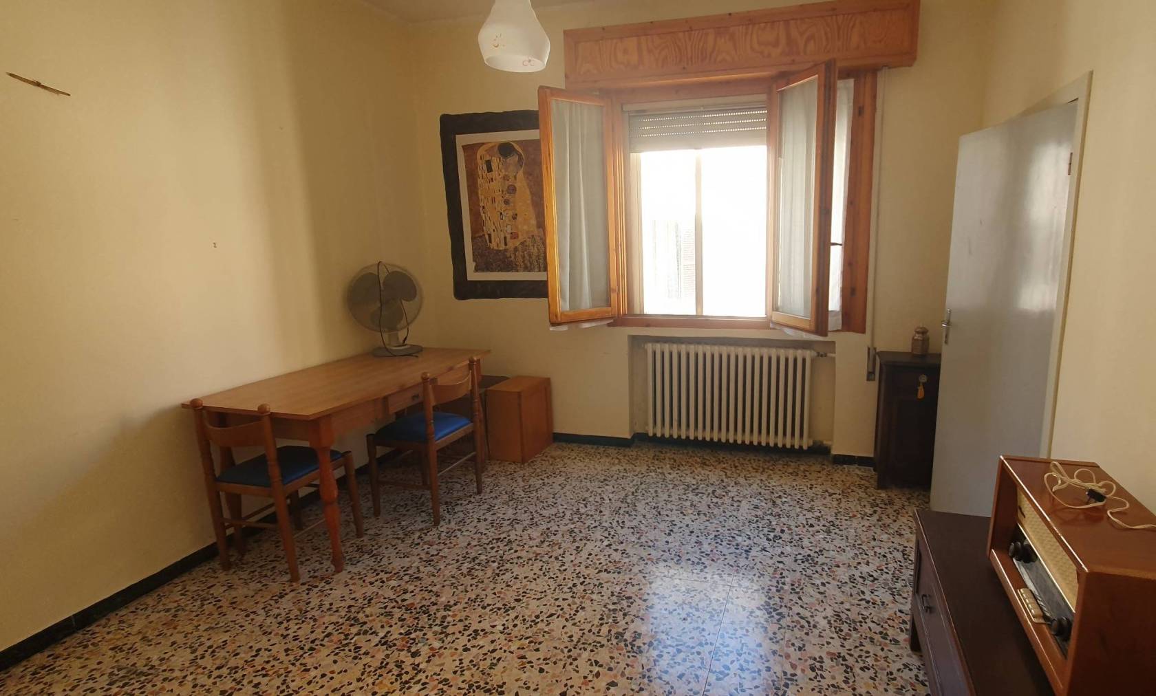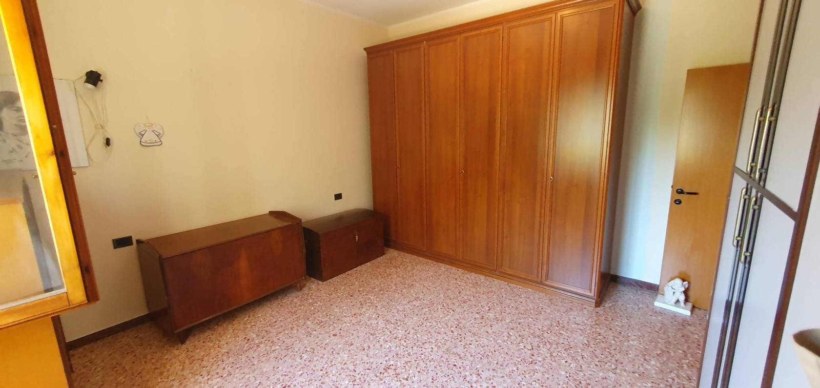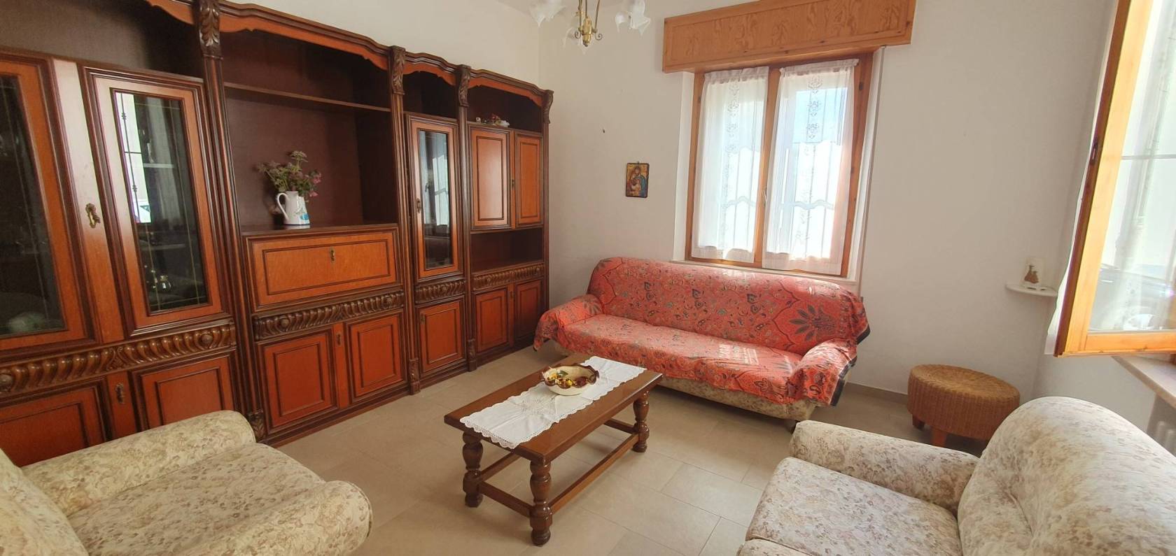 Al piano terra si trova l'ampia cucina abitabile con il ripostiglio, il soggiorno, una camera matrimoniale ed un bagno finestrato con il box doccia.