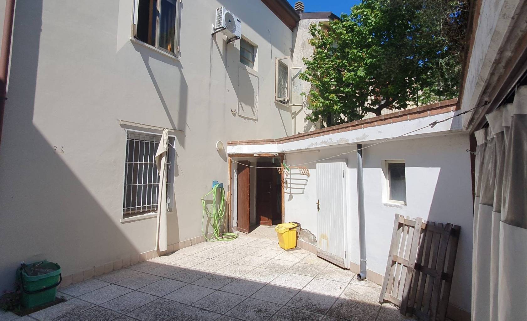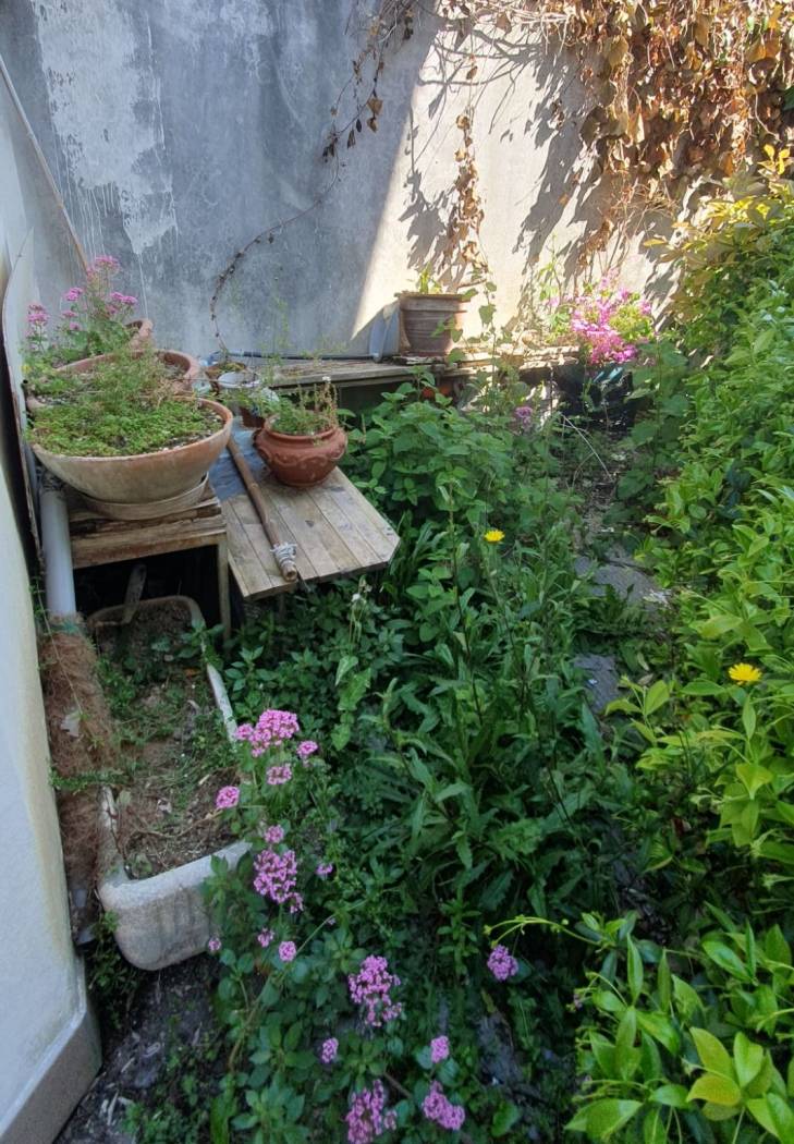 L'esterno esclusivo della casa di circa 100 mq ha il passo carraio dalla strada. Sul terreno si trova una struttura ripostiglio in muratura h 2m, un bagno/ lavanderia e il giardino.