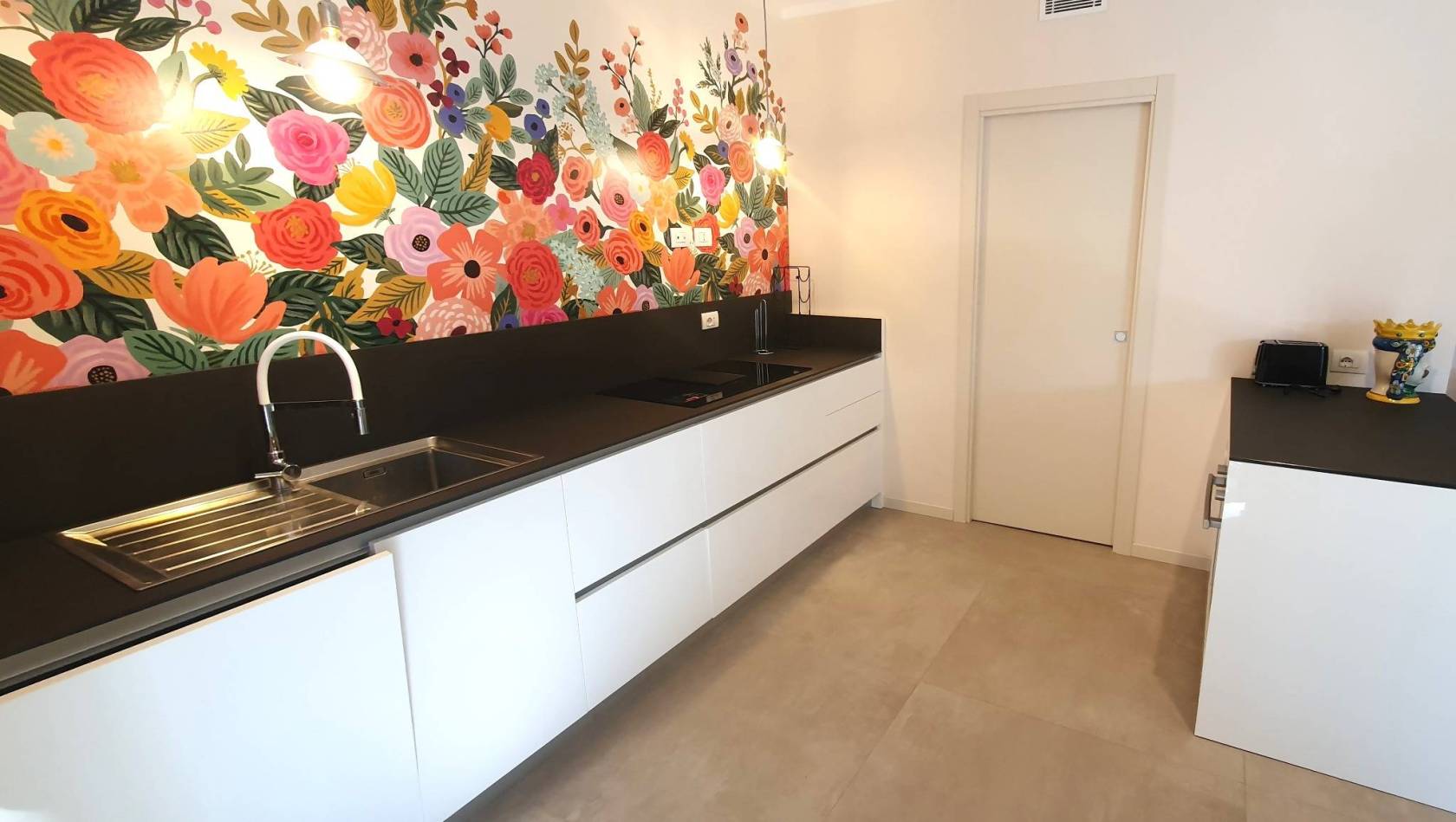 La zona living è semi separata dalla zona cucina. La cucina, completa di elettrodomestici di qualità, dispone di comodo ripostigio lavanderia / dispensa.La cucina è. La zona notte consiste in DUE CAMERE DA LETTO: due matrimoniali serviti da altri due bagni finestrati con ampi box doccia.