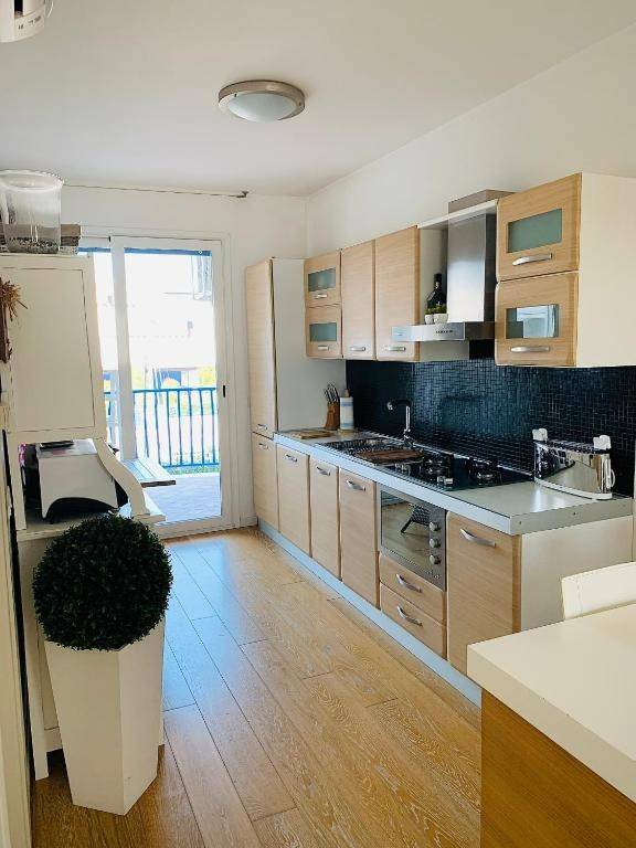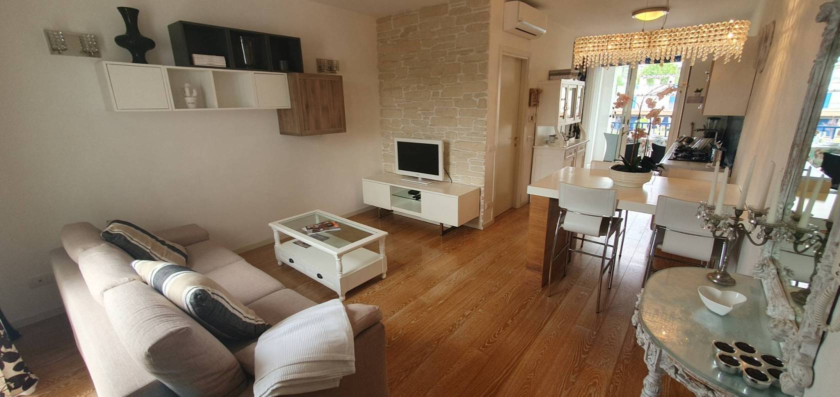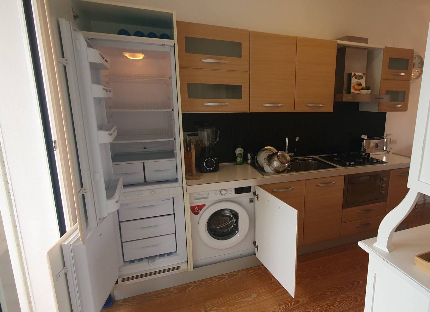 Dall'ingresso si accede alla sala CON IL DIVANO LETTO MATRIMONIALE , la zona pranzo e LA CUCINA COMPLETTAMENTE ATTREZZATA ( frigo grande, lavatrice) che danno sul terrazzo vista mare attrezzato per le vostre cene oppure una rilassante lettura mentre si contempla la splendida vista aperta sul porticciolo.