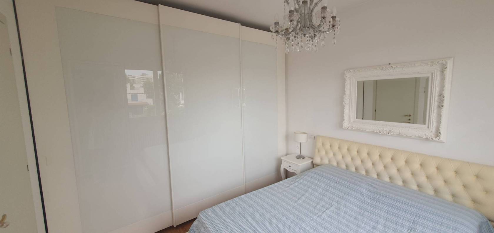 La camera matrimoniale arredata ed attrezzata con un armadio a muro, ha suo acceso sul terrazzo e dispone di aria condizionata.