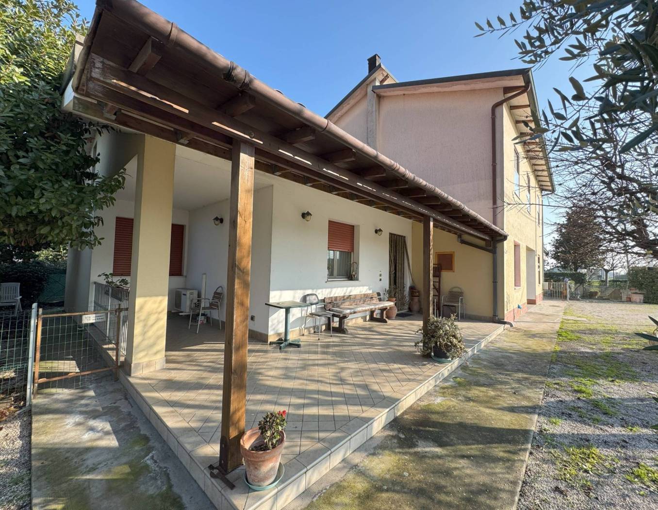 Alla casa si accede dal ampio cortile frontale che può ospitare comodamente il parcheggio di auto. Oltre questo, la casa gode di un bellissimo portico piastrellato e circondato dal verde. Al piano terra troviamo ampio salotto, cucina abitabile, due camere matrimoniali, salendo per le ampie e comode scale si accede al pian primo dove si trovano tre camere matrimoniali, una cameretta e un bagno.