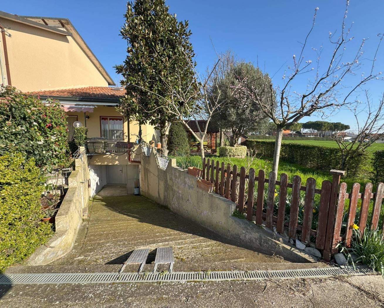 Alla casa si accede dal ampio cortile frontale che può ospitare comodamente il parcheggio auto.