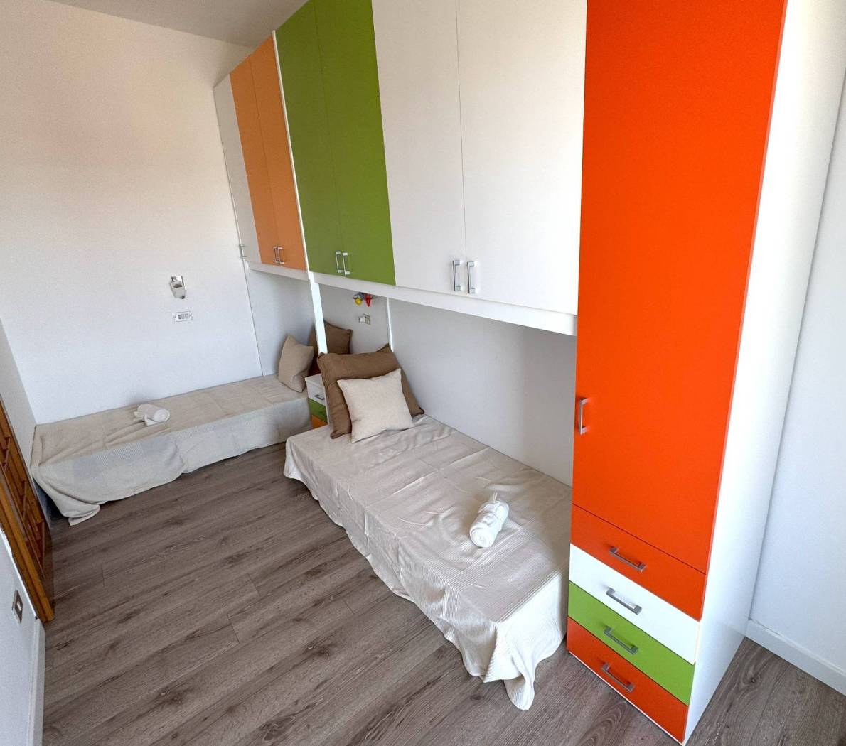 Due camere da letto, una MATRIMONIALE con il capiente armadio e l'accesso sul terrazzo e una DOPPIA con due letti singoli e cabina armadio molto grande, ha suo proprio balcone di servizio.